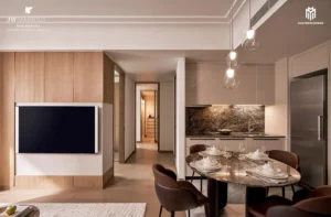 Thiết kế nội thất – Tôn vinh giá trị sống tinh tế: Mỗi căn hộ được chăm chút tỉ mỉ với bảng màu ấm áp, chất liệu tự nhiên cao cấp, cửa sổ kính lớn tối ưu ánh sáng và tầm nhìn. Thiết kế không gian mở, cấu trúc thông minh và bố trí linh hoạt giúp tối ưu công năng mà vẫn giữ trọn tính thẩm mỹ – nơi mỗi góc nhà đều là một trải nghiệm thư giãn đích thực.